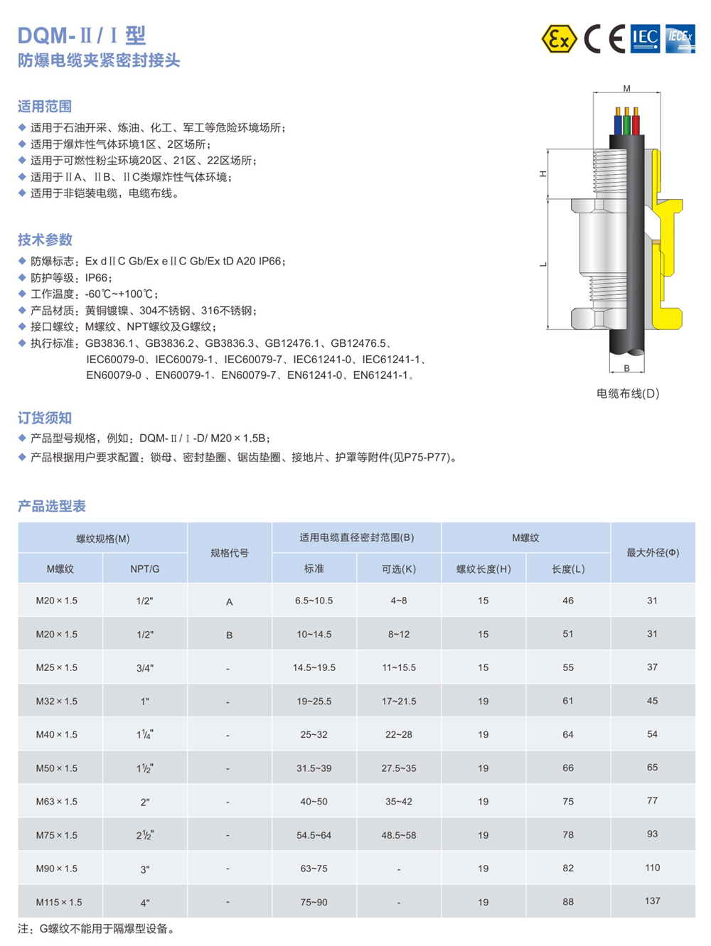 防爆电缆夹紧密封接头DQM-II.I